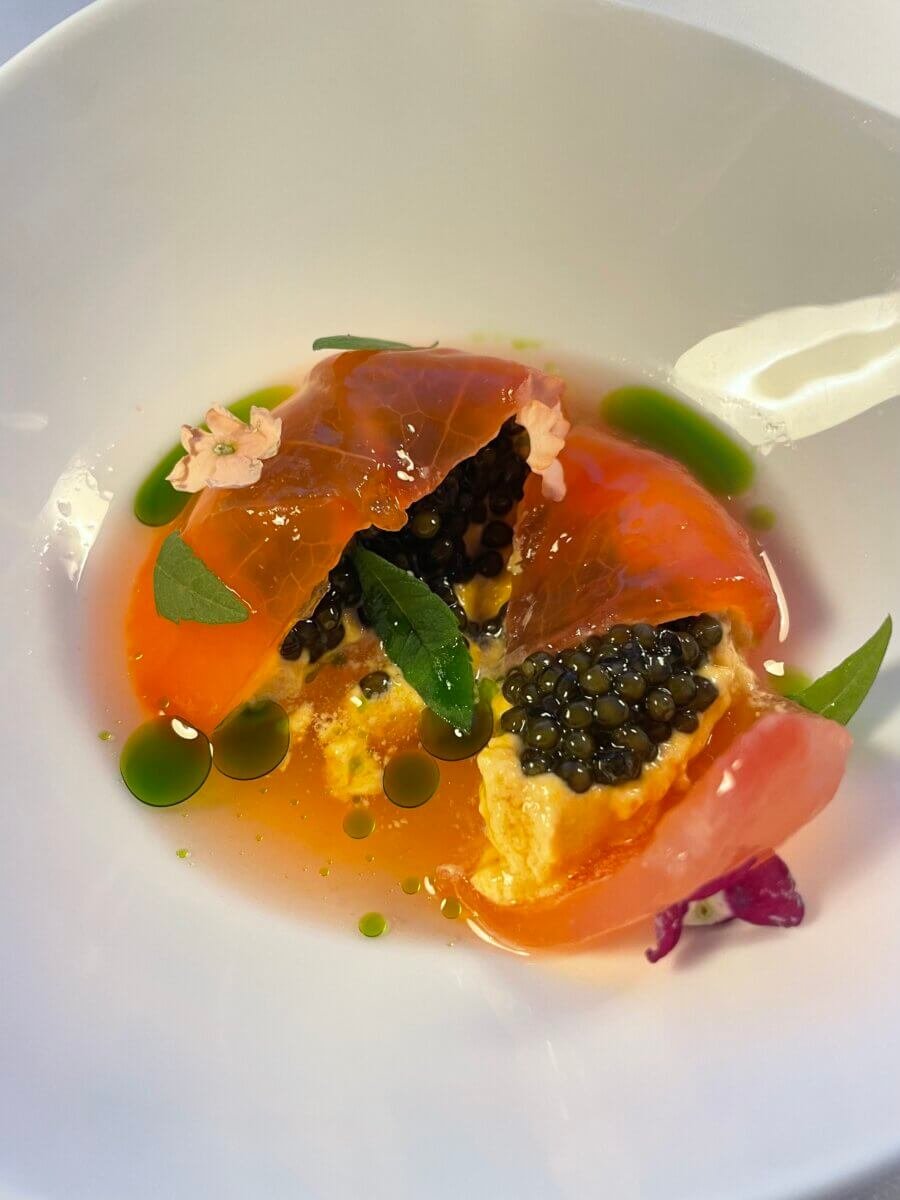 The menu at Pelagos offers an artistic blend of flavors—think sun-dried tomato cream paired with the briny depth of Oscietra caviar, or a delicate yellowtail ceviche with mint, pistachio, and elderflower. It’s a perfect marriage of Greek ingredients and Italian clarity.