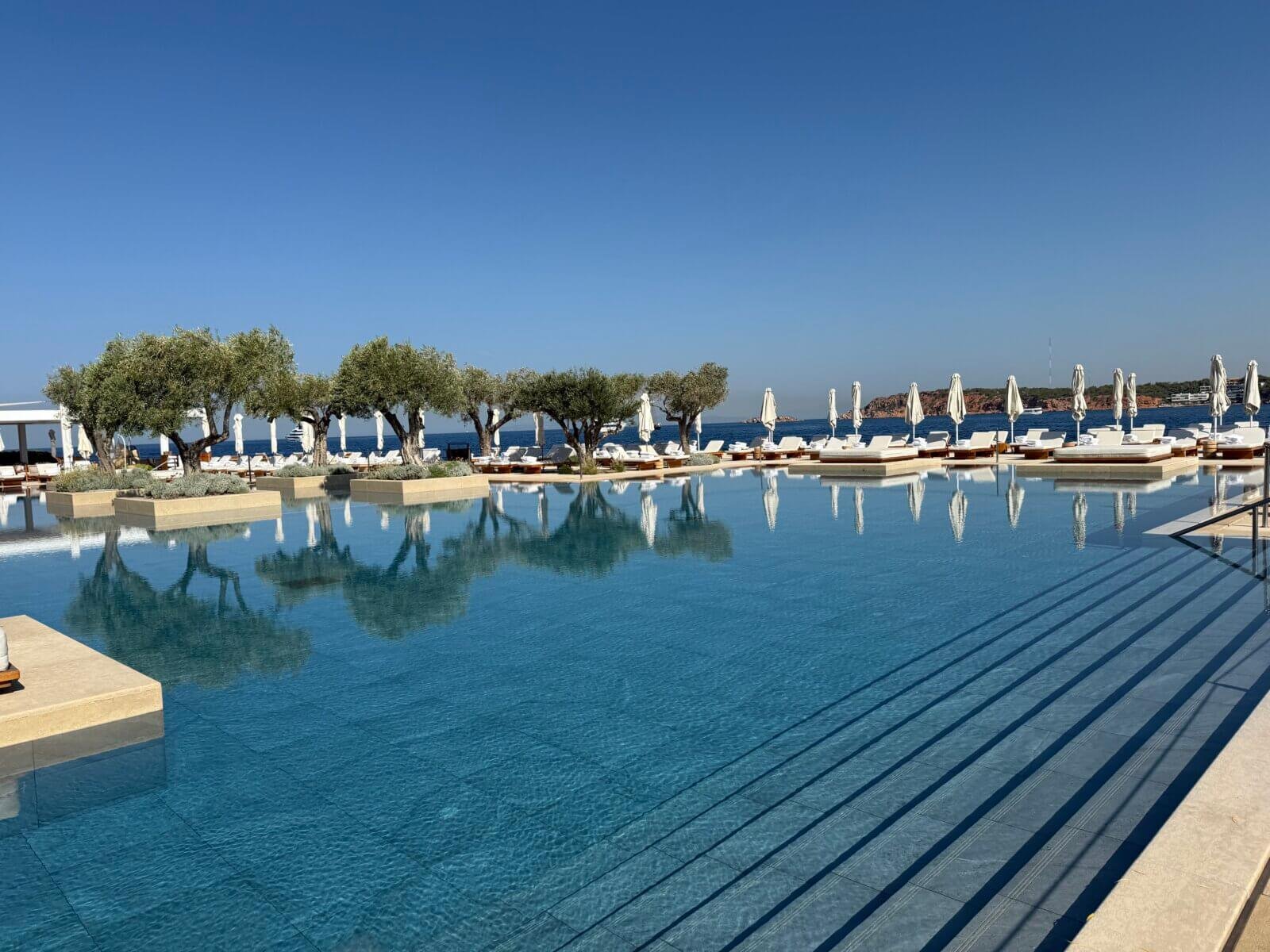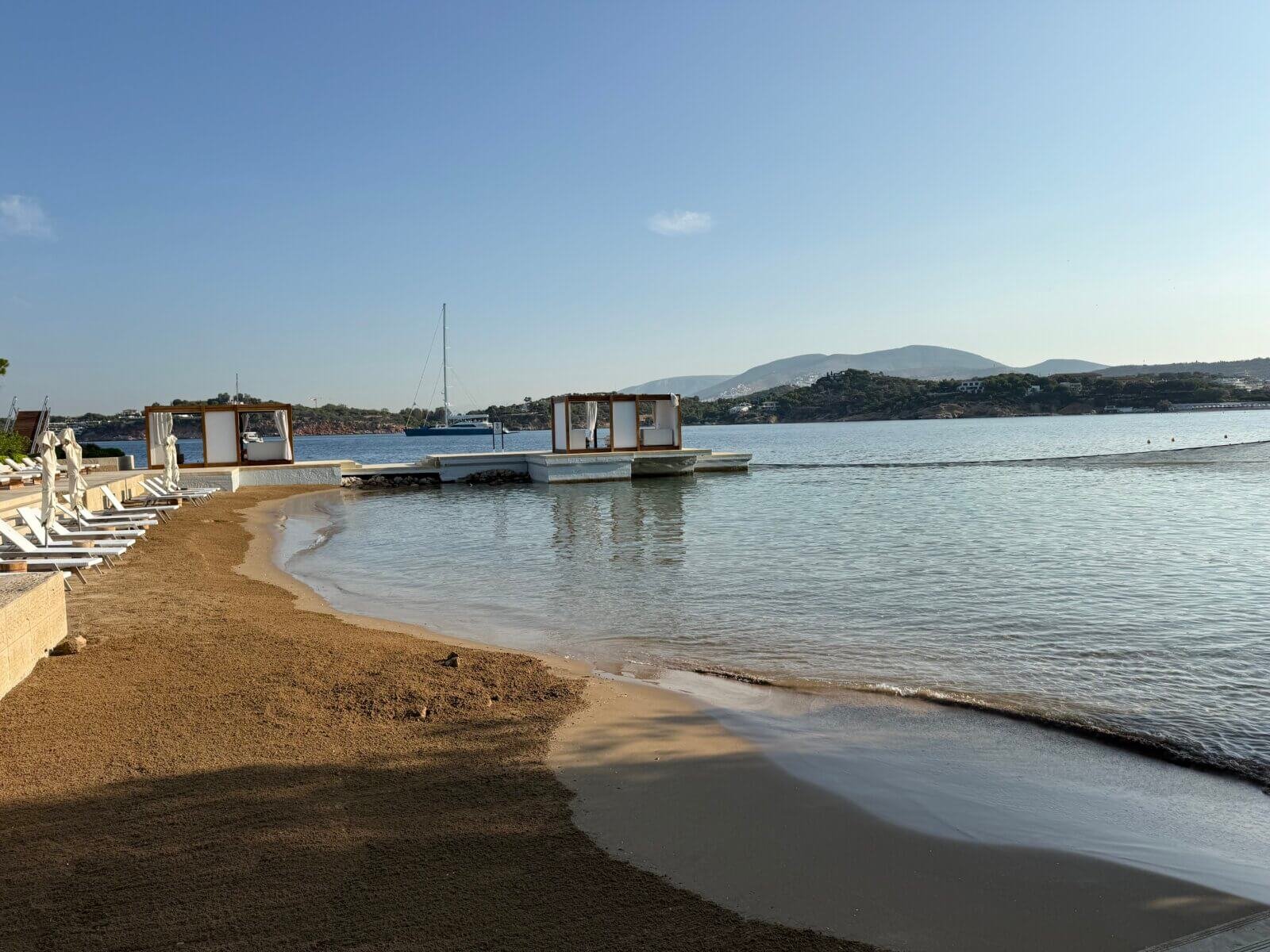 For those arriving in style, the resort offers both a helipad and a private jetty. The clientele reflects the setting: an international mix of Athenian socialites, American families, Middle Eastern business travellers, and discreet Europeans avoiding the flash of island hotspots.