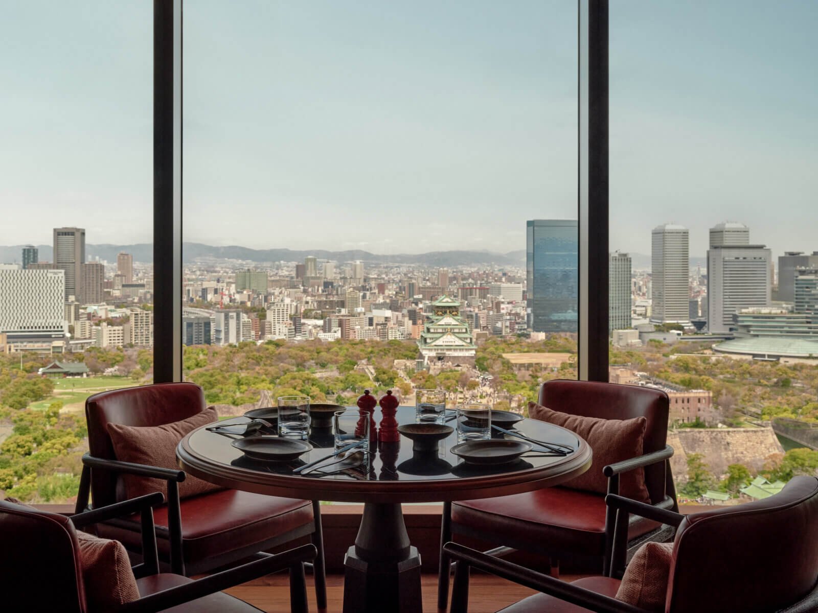 The restaurant offers wide views of Osaka’s skyline. Osaka Castle remains visible, reinforcing spatial continuity across the property. The teppanyaki experience takes place directly in front of guests: flame, steel and precision define the format. Premium seasonal ingredients sourced from across Japan are handled with controlled choreography. Movements are disciplined and economical. The performance element is structured rather than flamboyant.